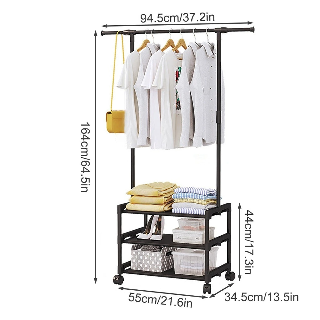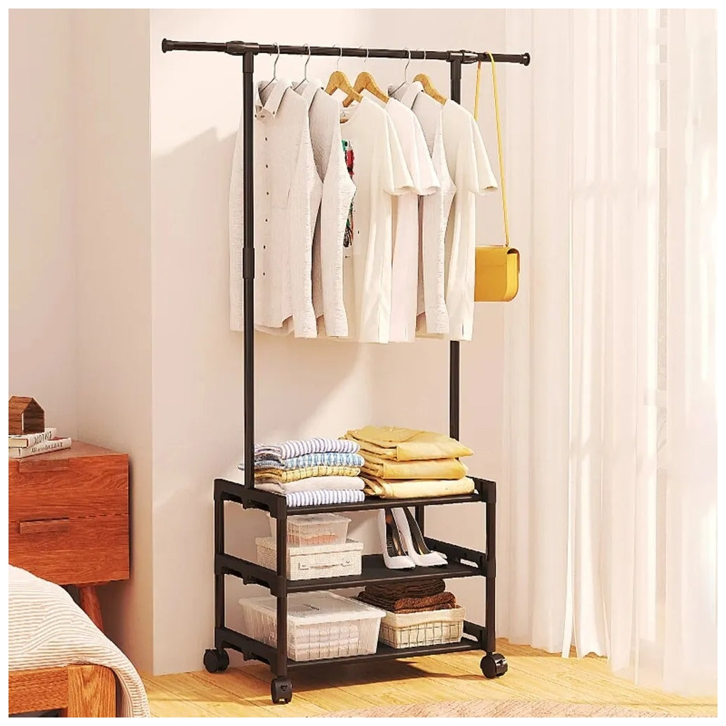 Cabide Organizador com Rodas e Prateleiras Ajustáveis