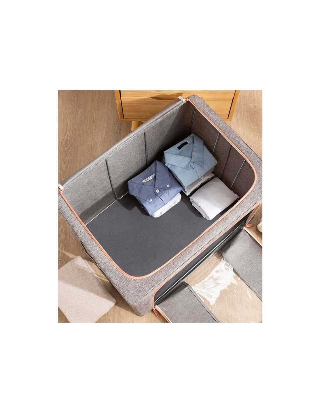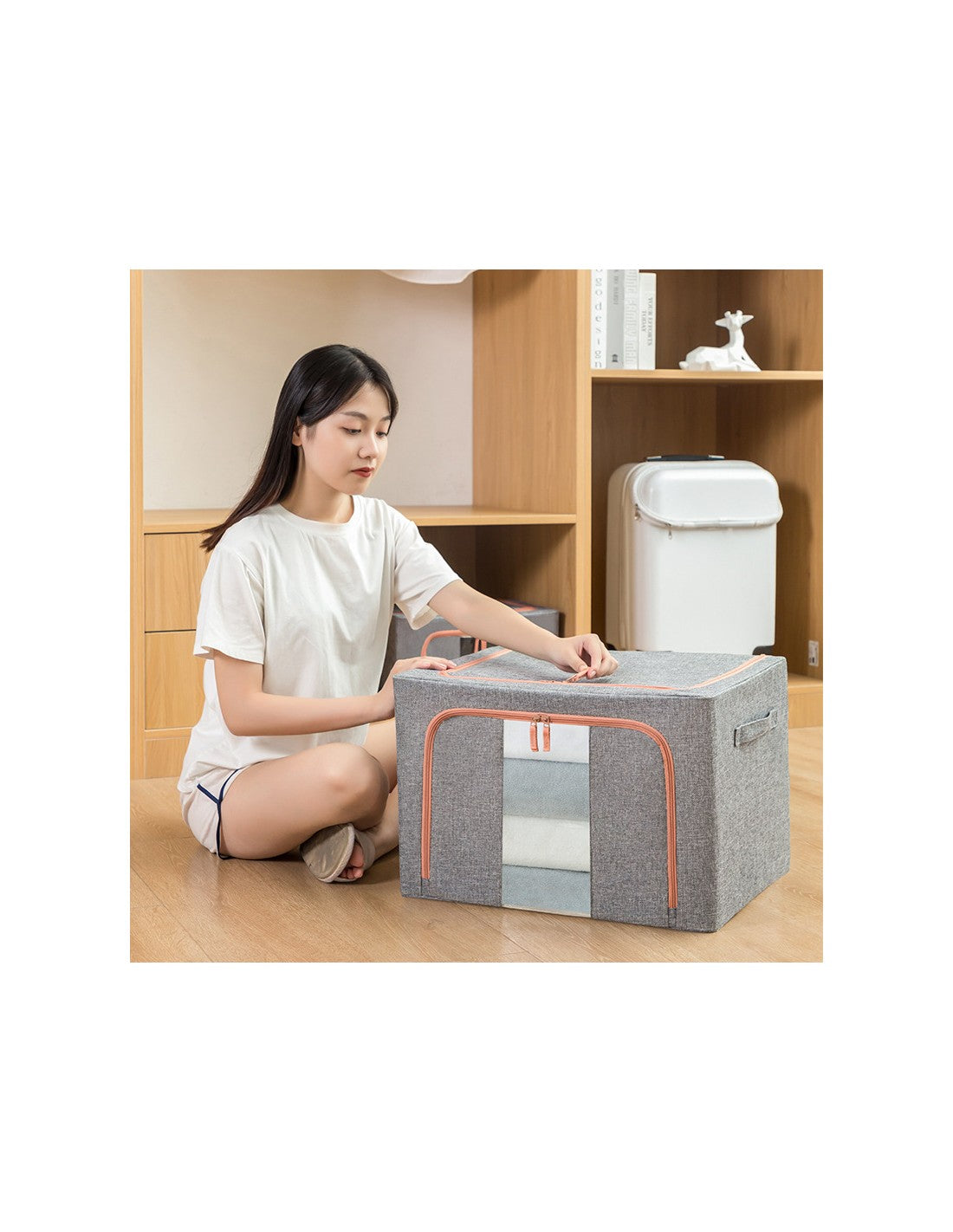 Caixa Organizadora Dobrável com Janela TransparenteA Caixa Organizadora Dobrável é a solução perfeita para manter as suas roupas, toalhas, lençóis ou acessórios organizados e protegidos. Com uma estrutura resistente e design prático, esta caixa facilita o armazenamento em qualquer espaço da sua casa.Características Principais:Design Dobrável:Pode ser facilmente dobrada quando não está em uso, economizando espaço.Janela Transparente:Permite visualizar o conteúdo sem necessidade de abrir a caixa.Grande Capacidade:Ideal para guardar roupas de estação, cobertores ou acessórios volumosos.Material Resistente:Feita de tecido reforçado, garantindo durabilidade e proteção contra poeira.Abertura Dupla:Zíperes na parte superior e frontal para facilitar o acesso aos itens armazenados.Alças Laterais:Facilita o transporte de forma prática e segura.Especificações Técnicas:Material:Tecido de poliéster e metal reforçadoDimensões:50cm x 40cm x 30cmCor Disponível:Cinza com detalhes em laranjaCapacidade de Peso:Suporta até 10kg