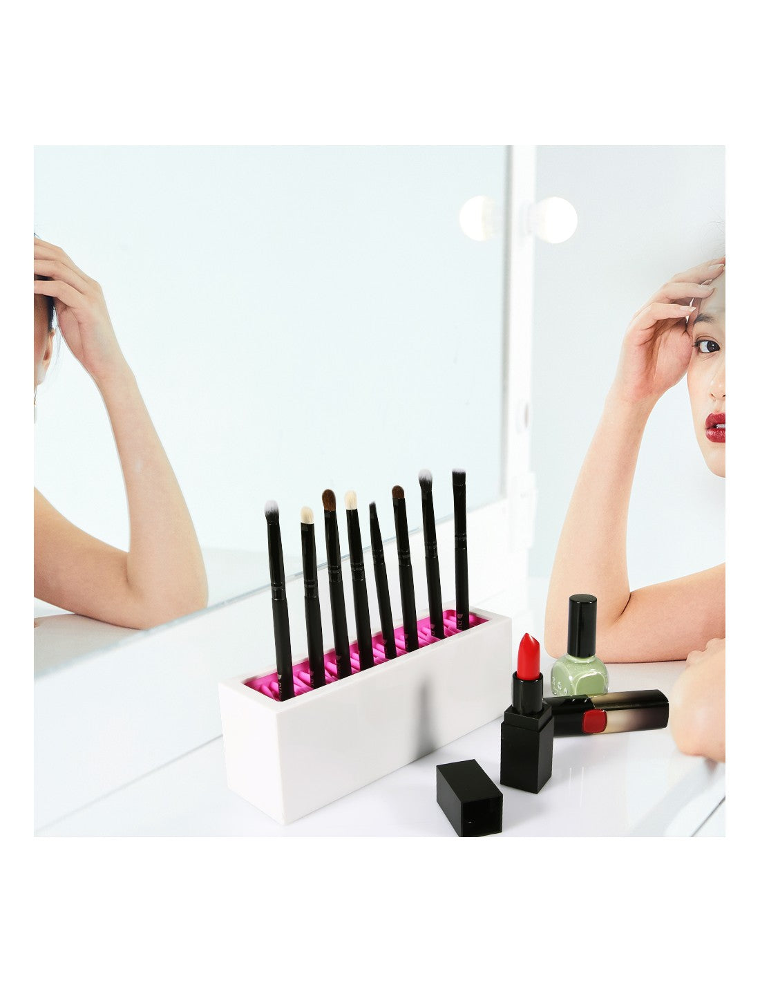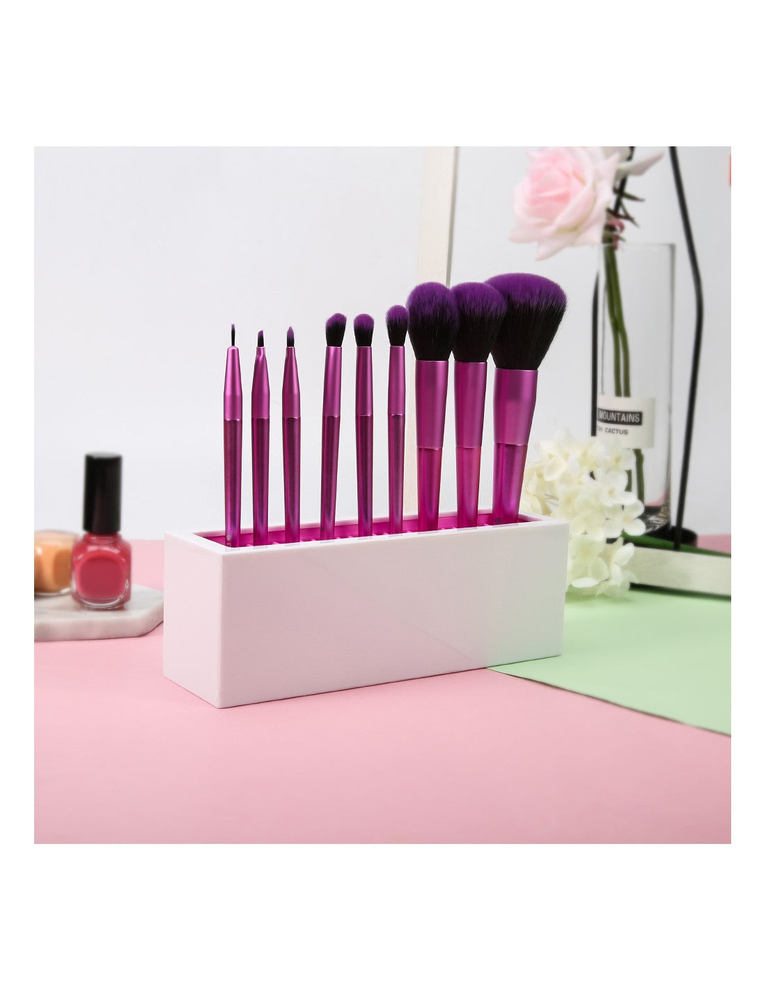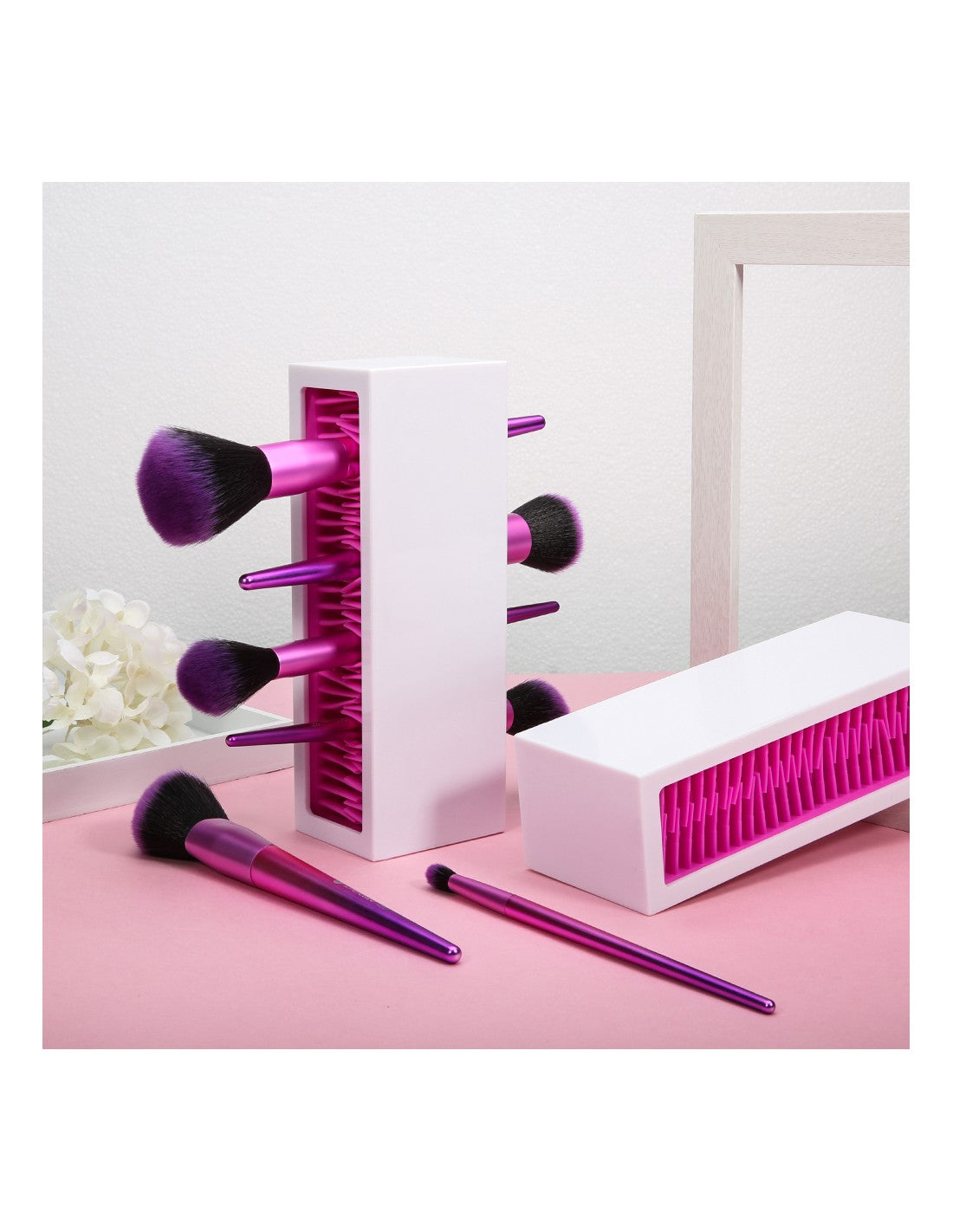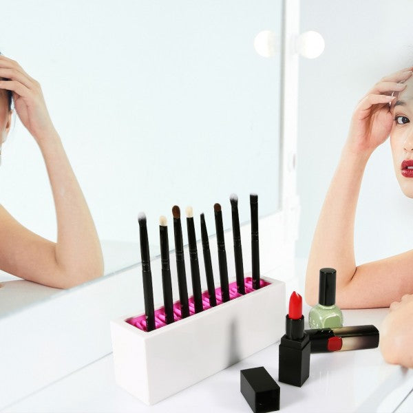 Suporte para Pincéis de MaquilhagemOrganize os seus pincéis de maquilhagem de forma elegante e prática com este suporte moderno. Ideal para manter o seu espaço de beleza limpo e arrumado, proporcionando fácil acesso aos seus utensílios essenciais.Vantagens do ProdutoDesign Moderno e Funcional: Complementa qualquer espaço de maquilhagem.Capacidade para Múltiplos Pincéis: Permite organizar até 10 pincéis de diferentes tamanhos.Fácil de Limpar: Feito com materiais resistentes e de fácil manutenção.Base Estável: Garante que os pincéis fiquem seguros e organizados.Especificações TécnicasMaterial: Plástico ABS de alta qualidade.Dimensões: 22 cm x 8 cm x 6 cm.Capacidade: Suporte para até 10 pincéis.Cor: Branco com interior rosa.