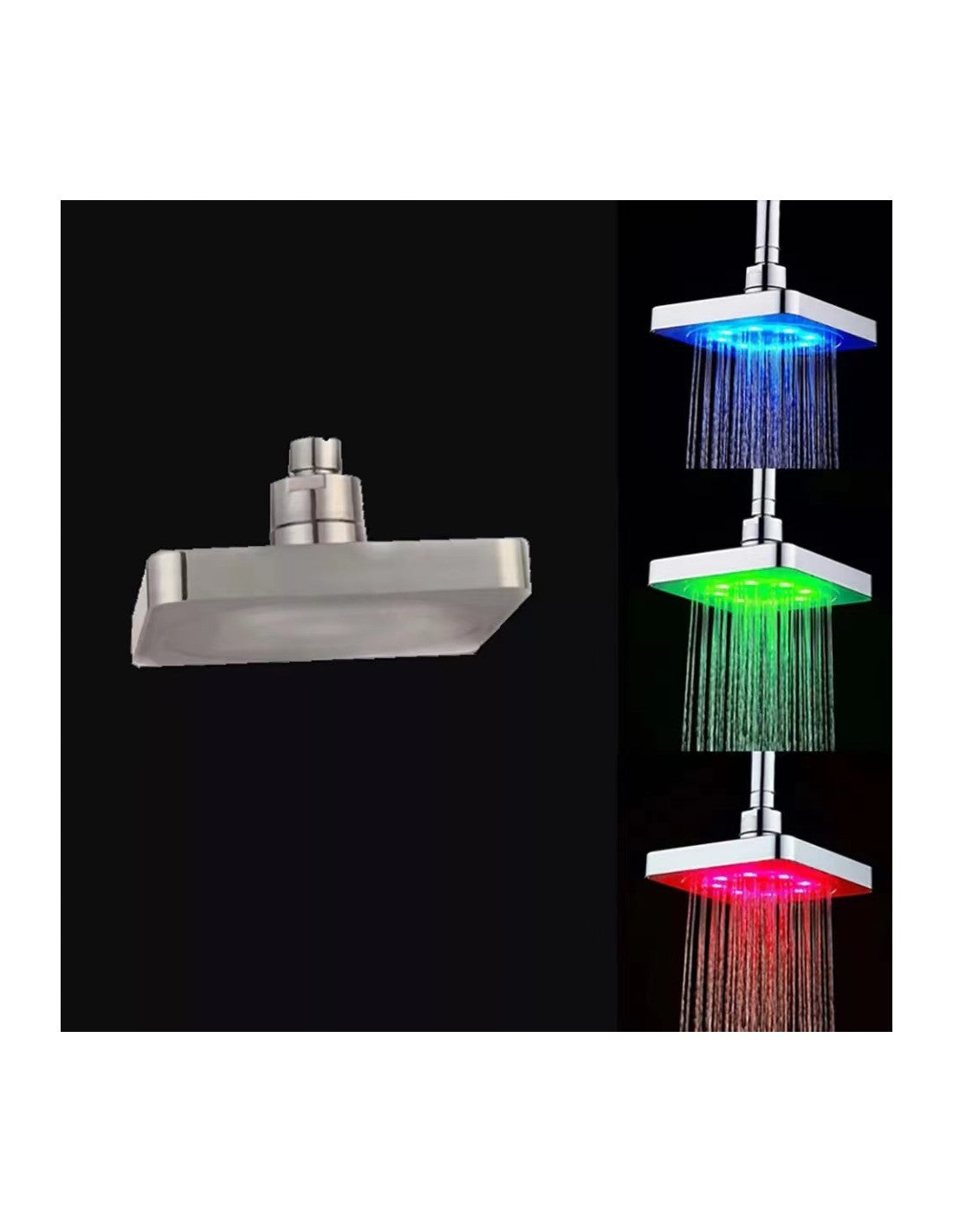 Chuveiro LED Multicolorido – Um Toque de Estilo e Modernidade ao Teu BanhoO Chuveiro LED Multicolorido é a combinação perfeita de funcionalidade e design inovador, transformando o teu banho numa experiência relaxante e visualmente fascinante. Ideal para quem busca um toque de modernidade e conforto.Características principais:Iluminação LED Multicolorida: As luzes LED mudam de cor automaticamente, criando uma atmosfera única e relaxante no banho.Funcionamento Sem Bateria: O sistema LED é alimentado pelo fluxo de água, dispensando a necessidade de pilhas ou eletricidade.Material Durável e Estiloso: Fabricado em aço inoxidável de alta qualidade, resistente à corrosão e com acabamento elegante.Instalação Simples: Compatível com a maioria dos sistemas de encanamento padrão, permitindo uma instalação fácil e rápida.Experiência Revigorante: Com um fluxo de água suave e uniforme, oferece o máximo conforto durante o banho.Especificações técnicas:Material: Aço inoxidávelDimensões: 20 cm x 20 cm (aproximadamente)Sistema LED: Alimentado por fluxo de águaCores LED: Multicoloridas (mudança automática)Compatibilidade: Instalação universal