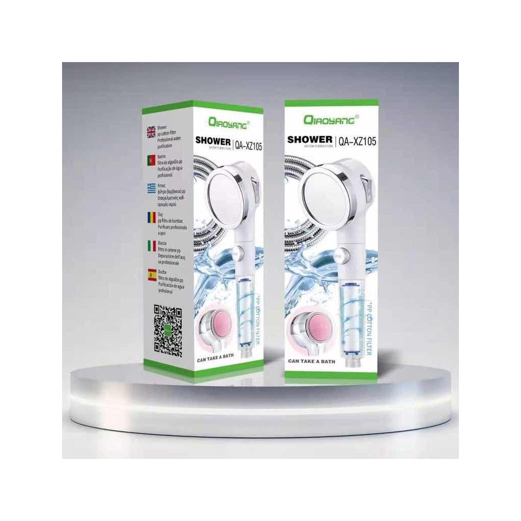 Chuveiro Purificador de Água QA-XZ105 – Experiência de Banho Saudável e RevigoranteMelhore a qualidade do seu banho com o Chuveiro Purificador QA-XZ105. Equipado com um sistema de filtragem eficiente, este chuveiro remove impurezas da água, proporcionando uma experiência de banho mais limpa, saudável e relaxante.Características Principais:Sistema de Filtragem Avançado:Filtro de algodão PP que reduz impurezas, cloro e metais pesados da água.Design Moderno:Cabeça de chuveiro elegante e ergonómica, fácil de instalar em qualquer casa de banho.Pressão de Água Otimizada:Aumenta a pressão enquanto reduz o consumo de água, proporcionando um fluxo constante e confortável.Material Durável:Construído com materiais de alta qualidade para maior durabilidade e resistência.Benefícios:Água mais pura e suave, ideal para peles sensíveis.Melhora a saúde do cabelo e da pele, reduzindo irritações causadas por água dura ou clorada.Economia de água sem comprometer o conforto do banho.Especificações Técnicas:Modelo:QA-XZ105Filtro:Algodão PP substituívelPressão Máxima:6 barMaterial:ABS de alta qualidadeCompatibilidade:Fácil de conectar a todos os sistemas de chuveiro padrão