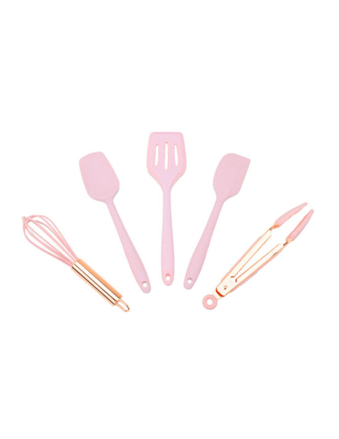 Conjunto de Utensílios de Cozinha em Silicone Rosa