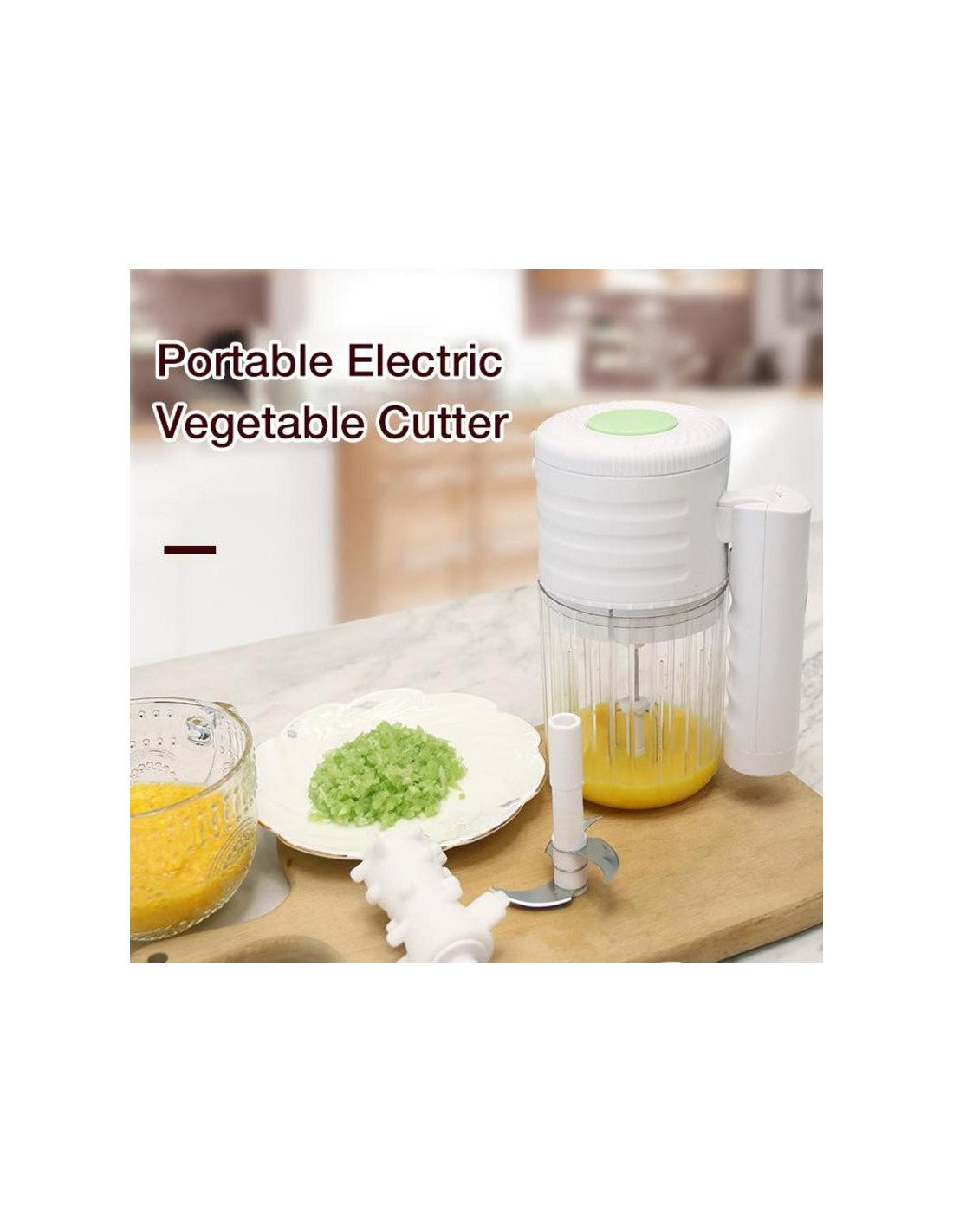 Cortador e Misturador Elétrico Portátil de LegumesFacilite o preparo das suas receitas com o cortador elétrico portátil de legumes. Ideal para triturar, picar e misturar diversos alimentos de forma prática e eficiente, poupando tempo na cozinha.Características Principais:Design Portátil:Compacto e fácil de transportar, ideal para uso em casa ou em viagens.Versatilidade:Perfeito para legumes, frutas, nozes e até para misturar sumos e massas.Fácil de Limpar:Componentes desmontáveis, garantindo praticidade na limpeza.Bateria Recarregável:Operação sem fios com carregamento via USB.Lâminas Afiadas:Feitas de aço inoxidável para um corte rápido e eficiente.Especificações Técnicas:Material: Plástico ABS e lâminas de aço inoxidável.Capacidade do Copo: 350 ml.Alimentação: Bateria recarregável via USB (5V).Dimensões: Compactas para fácil armazenamento.Peso: Leve, ideal para transporte.