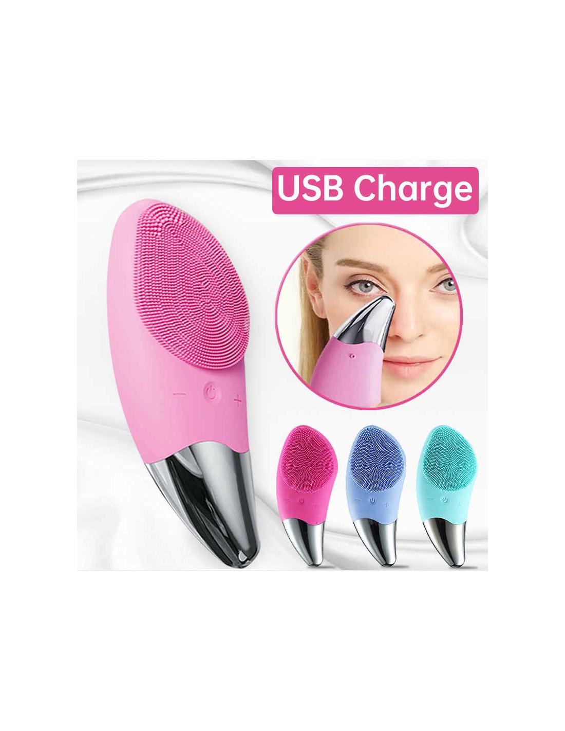 Escova Facial de Limpeza Sónica com Carregamento USB