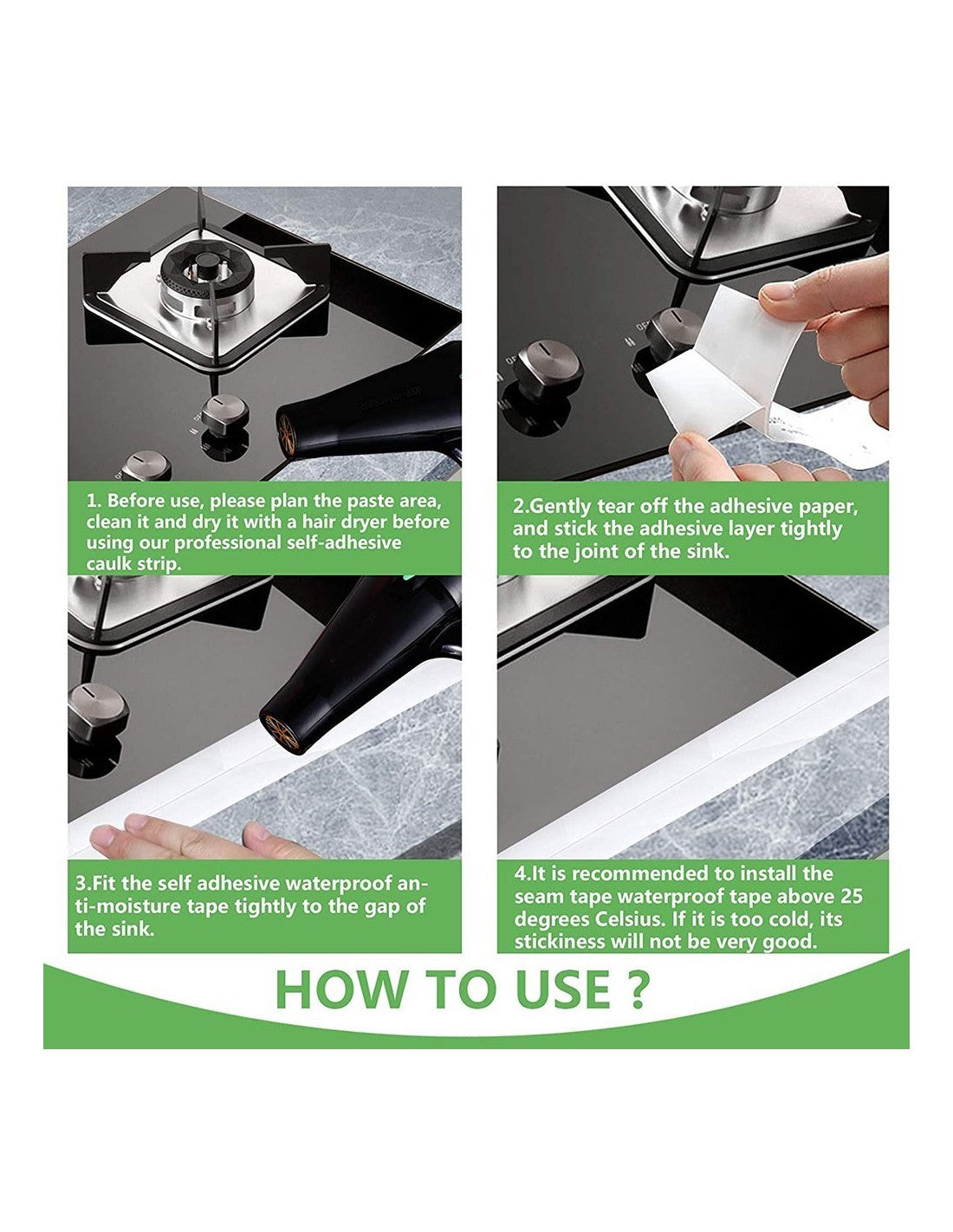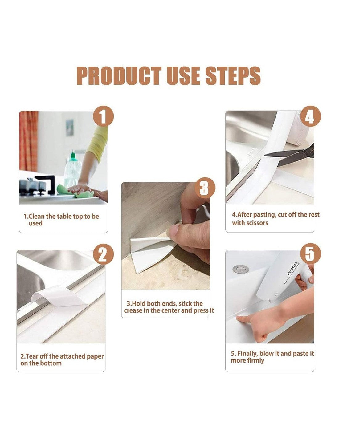 Fita de Selagem Impermeável Autocolante para Cozinha e Casa de BanhoGaranta a proteção contra infiltrações e acumulação de sujidade com esta fita de selagem impermeável. Ideal para aplicações em áreas húmidas, proporciona uma vedação perfeita e duradoura.Características Principais:Impermeável e Resistente:Protege contra a humidade e evita a formação de mofo.Autocolante de Forte Adesão:Fácil de aplicar sem necessidade de ferramentas adicionais.Flexível e Ajustável:Adapta-se a várias superfícies e cantos, como pias, banheiras e bancadas.Design Estético:Disponível em cor neutra que combina com qualquer decoração.Fácil de Limpar:Superfície lavável e resistente a manchas.Especificações Técnicas:Material: PVC de alta qualidade.Dimensões: 3,2 m de comprimento x 3,8 cm de largura.Cor: Branco.Aplicação: Superfícies lisas e secas.