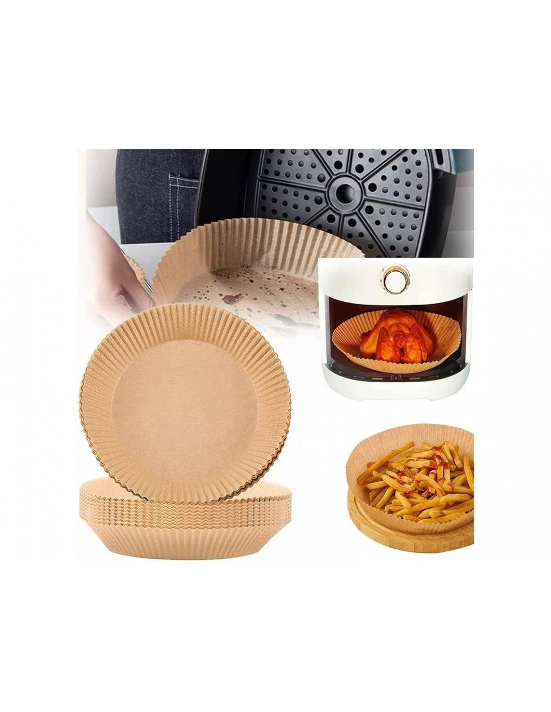 Formas de Papel Antiaderentes para Airfryer - 16cm (50 unidades)Otimize o uso da sua airfryer com estas práticas formas de papel antiaderente. Feitas com materiais de alta qualidade, são ideais para cozinhar de forma mais limpa e segura, evitando que os alimentos grudem e facilitando a limpeza.Características Principais:Tamanho Perfeito:16 cm de diâmetro, compatível com a maioria das airfryers.Material Antiaderente:Garante que os alimentos não grudem, preservando sua textura e sabor.Resistência ao Calor:Suporta temperaturas elevadas, ideal para cozinhar uma grande variedade de pratos.Fácil de Usar:Descartável, poupando tempo na limpeza.Versátil:Perfeito para batatas fritas, frango, bolos e outros alimentos preparados na airfryer.Especificações Técnicas:Material:Papel de qualidade alimentar.Dimensões:16 cm de diâmetro.Quantidade:50 unidades por embalagem.Resistência térmica:Até 220°C.
