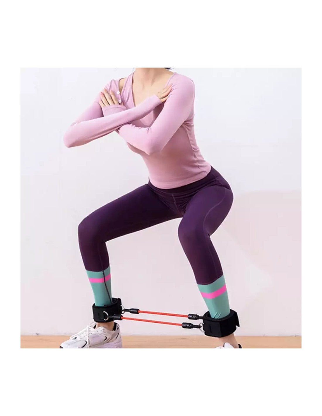 Kit de Elásticos de Resistência para Pernas e Glúteos – Fortalece e TonificaTransforma os teus treinos com o Kit de Elásticos de Resistência para Pernas e Glúteos. Um equipamento prático e eficiente para fortalecer os músculos inferiores, tonificar e melhorar a tua performance física.Características principais:Vários Níveis de Resistência: Inclui elásticos com diferentes níveis de tensão para um treino progressivo e personalizado.Conforto e Segurança: Equipado com alças ajustáveis e acolchoadas para máximo conforto e segurança durante os exercícios.Resultados Visíveis: Ideal para fortalecer glúteos, pernas e melhorar a estabilidade e coordenação.Portátil e Versátil: Leve e fácil de transportar, perfeito para usar em casa, no ginásio ou em viagens.Material de Alta Qualidade: Fabricado com borracha elástica durável e resistente ao desgaste.Especificações técnicas:Material: Borracha de alta resistência e tecido acolchoadoCores dos elásticos: Verde e vermelho (diferentes tensões)Dimensões: Comprimento ajustávelUtilização: Treino de força, resistência e tonificação