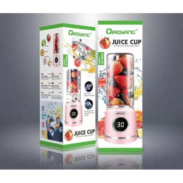 Liquidificador Portátil Qiaoyang Juice Cup QY-2680 – Praticidade e Saúde Sempre à MãoOLiquidificador Portátil Qiaoyang Juice Cup QY-2680é ideal para preparar sumos, batidos e smoothies de forma prática e rápida. Compacto e leve, pode ser levado para qualquer lugar, garantindo uma alimentação saudável em todas as ocasiões.Características Principais:Design Compacto e Portátil: Perfeito para viagens, trabalho ou atividades ao ar livre, cabe facilmente na mochila ou bolsa.Função de Autolimpeza: Facilita a manutenção, poupando tempo e esforço.Motor Potente com Lâminas em Aço Inoxidável: Tritura frutas, legumes e até gelo com eficiência, garantindo bebidas cremosas e deliciosas.Ecrã LED Inteligente: Exibe o tempo de funcionamento e o estado da bateria, proporcionando maior controlo.Carregamento USB: Bateria recarregável que oferece autonomia para várias utilizações com apenas uma carga.Benefícios:Alimentação Saudável Onde Quiser: Prepare bebidas nutritivas e frescas a qualquer momento.Fácil de Usar e Transportar: Ideal para quem tem uma rotina agitada e não abre mão de refeições rápidas e saudáveis.Segurança Garantida: Sistema de proteção que impede o funcionamento sem a base corretamente encaixada.Especificações Técnicas:Modelo: QY-2680Material: Plástico e aço inoxidávelCapacidade: 380 mlFonte de Energia: Carregamento USBDimensões: Compacto e leve para fácil transporte