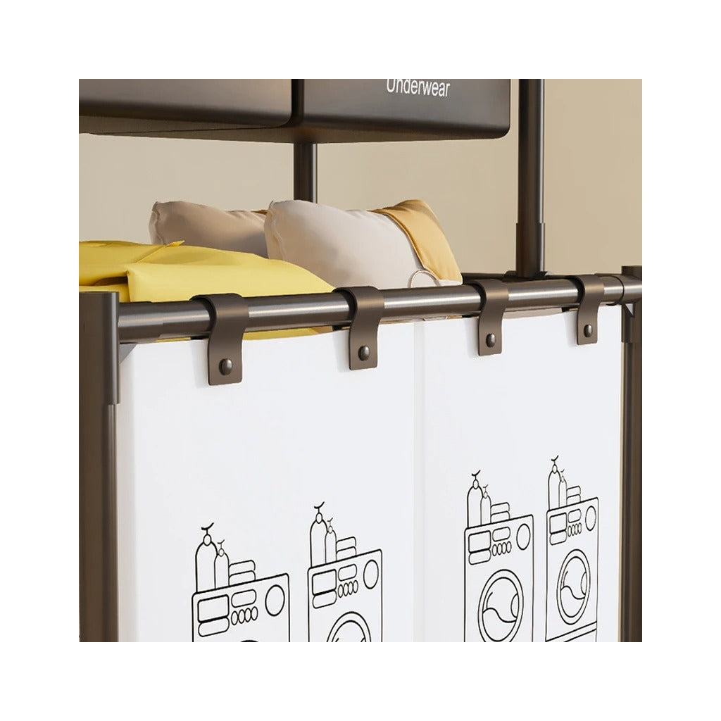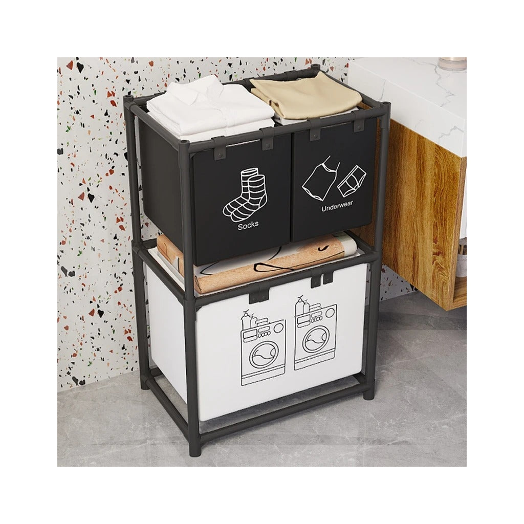 Organizador de Lavandaria com Cestos e Estrutura CompactaFacilite a organização da sua lavandaria com este prático organizador, equipado com cestos para separar roupas e acessórios. Com um design moderno e funcional, inclui compartimentos marcados para diferentes tipos de itens e uma estrutura compacta que economiza espaço. Ideal para manter a lavandaria arrumada e eficiente.Características:Três compartimentos diferenciados: Inclui cestos marcados para meias, roupa íntima e outros itens, facilitando a separação e organização.Estrutura resistente: Fabricada em materiais de alta qualidade, garantindo durabilidade e estabilidade.Dimensões compactas: Com 97 cm de altura, 57 cm de largura e 28 cm de profundidade, é perfeito para espaços pequenos.Design moderno: Combina funcionalidade e estética, adaptando-se a qualquer lavandaria.Fácil de limpar e montar: Cestos removíveis para facilitar a manutenção e estrutura simples de montar.
