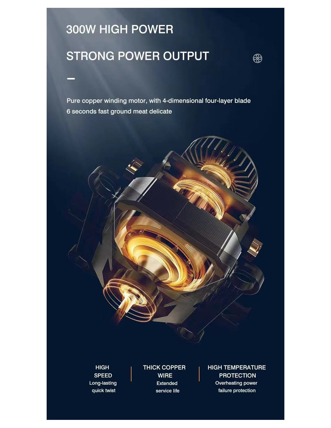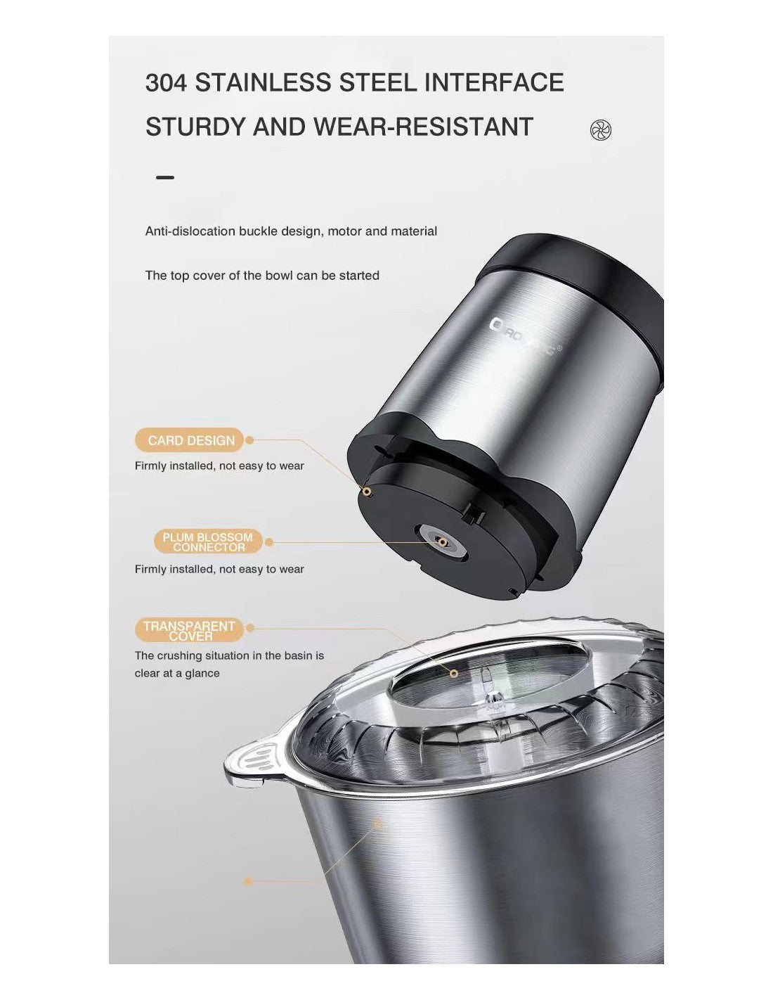 Picadora de Carne QA-CF25 – Potência e Eficiência na Sua CozinhaPrepare refeições deliciosas e saudáveis com a Picadora de Carne QA-CF25. Com capacidade de 2 litros e lâminas afiadas em aço inoxidável, este equipamento é essencial para quem valoriza praticidade e qualidade na cozinha.Características Principais:Capacidade de 2L:Perfeito para processar grandes quantidades de carne em pouco tempo.Motor de 500W:Potente e eficiente, garante um desempenho rápido e uniforme.Lâminas em Aço Inoxidável 304:Alta durabilidade e corte preciso para diferentes tipos de carne.Sistema de Engrenagem Dupla:Proporciona maior consistência e controle no processamento.Benefícios:Ideal para preparar hambúrgueres, almôndegas, enchidos e muito mais.Fácil de usar e limpar, tornando a experiência culinária mais prática.Design moderno e robusto, adequado para qualquer cozinha.Especificações Técnicas:Modelo:QA-CF25Potência:500WCapacidade:2 litrosMaterial:Aço Inoxidável 304Tensão:110V-240VDimensões:25 x 20 x 18 cm
