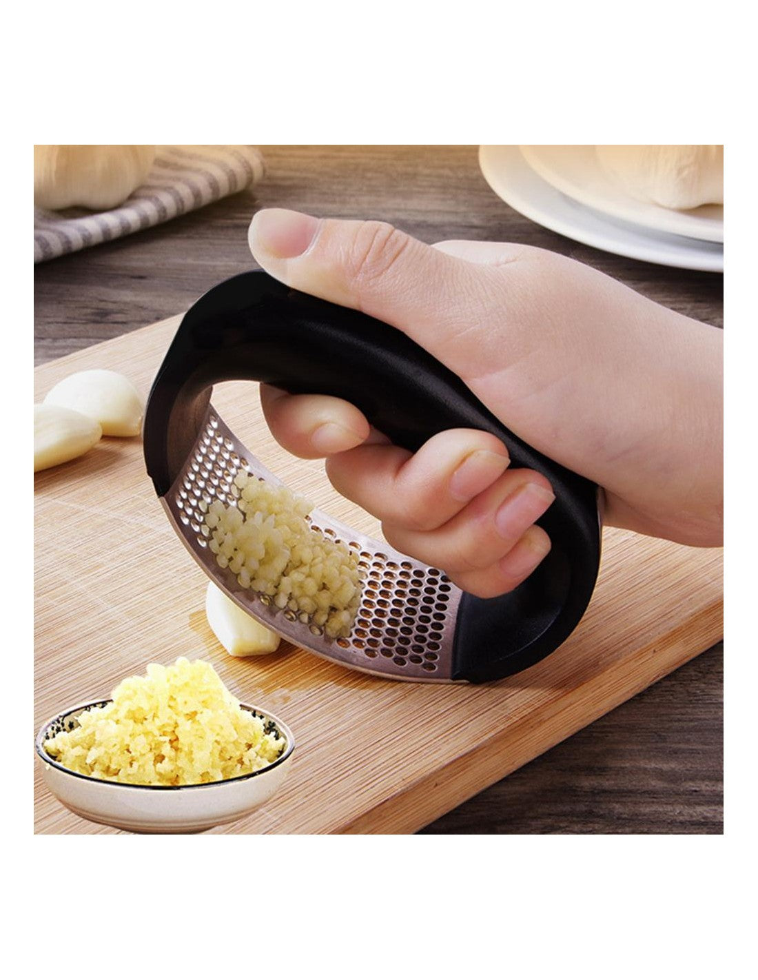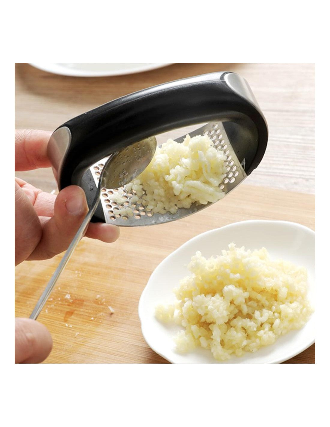 Prensa de Alho em Aço Inoxidável – Praticidade e Higiene na CozinhaA prensa de alho em aço inoxidável é a solução ideal para facilitar o preparo das suas receitas. Com um design ergonómico e funcional, permite esmagar alho de forma rápida, segura e eficiente, mantendo as mãos livres de odores.Características principais:Material Durável:Fabricada em aço inoxidável de alta qualidade, resistente à ferrugem e de longa durabilidade.Design Ergonómico:Alça confortável que facilita o manuseio, ideal para reduzir o esforço.Fácil de Limpar:Basta passar por água corrente ou lavar na máquina de lavar louça.Esmagamento Eficiente:Perfura e tritura o alho em segundos, economizando tempo e energia.Especificações técnicas:Dimensões: 10,5 cm x 7 cmPeso: 105 gMaterial: Aço inoxidável e plástico ABSBenefícios do produto:Esta prensa de alho é perfeita para quem procura praticidade e qualidade na cozinha. Compacta e fácil de guardar, torna-se indispensável no dia a dia.