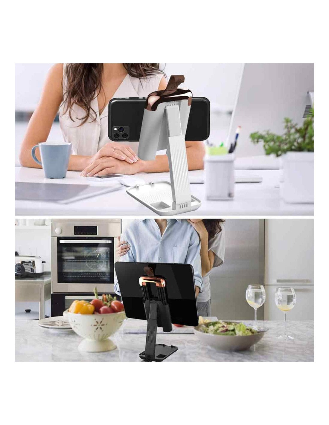Suporte Dobrável Ajustável para Tablet e TelemóvelO Suporte Dobrável Ajustável é a solução perfeita para facilitar a visualização do seu tablet ou telemóvel. Com design moderno e funcional, oferece estabilidade e conforto para diferentes usos, seja em vídeo chamadas, leitura, ou até mesmo para assistir filmes.Vantagens do Produto:Altura Ajustável:Ajuste facilmente a altura para garantir uma posição confortável e ergonómica.Inclinação Personalizável:Permite ajustar o ângulo de visão ideal, minimizando reflexos e cansaço visual.Design Compacto e Dobrável:Fácil de transportar, ideal para viagens ou para uso em casa e no escritório.Base Antiderrapante:Garante estabilidade, evitando quedas ou deslizamentos.Compatível com Diversos Dispositivos:Suporta tablets e telemóveis de diferentes tamanhos, até 12 polegadas.Características Técnicas:Material:Plástico ABS de alta qualidadeCores Disponíveis:BrancoTamanho Dobrado:14 x 8 x 2,5 cmAltura Ajustável:10 cm a 15 cmCompatibilidade:Telemóveis e tablets até 12 polegadasPeso:250 gInclui:1 x Suporte Dobrável Ajustável