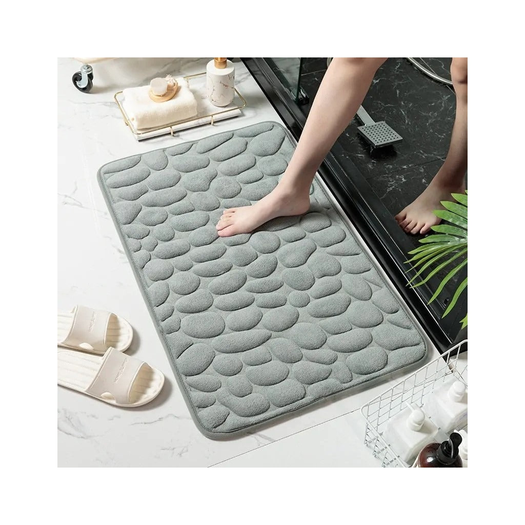 Tapete de Casa de Banho Antiderrapante – Conforto e Segurança para o Seu Dia a DiaTransforme a sua casa de banho num espaço mais confortável e seguro com este tapete de banho macio e antiderrapante. Com um design elegante inspirado em pedras naturais, proporciona um toque luxuoso e aconchegante para os seus pés, absorvendo a humidade de forma eficaz.Características Principais:Superfície macia e confortável:Sensação agradável ao toque para máximo conforto após o banho.Absorção de água rápida:Mantém o chão seco e evita escorregões.Base antiderrapante:Maior segurança para toda a família.Design moderno e sofisticado:Estilo inspirado em pedras naturais, combinando com qualquer decoração.Fácil de limpar:Lavável e resistente ao uso diário.